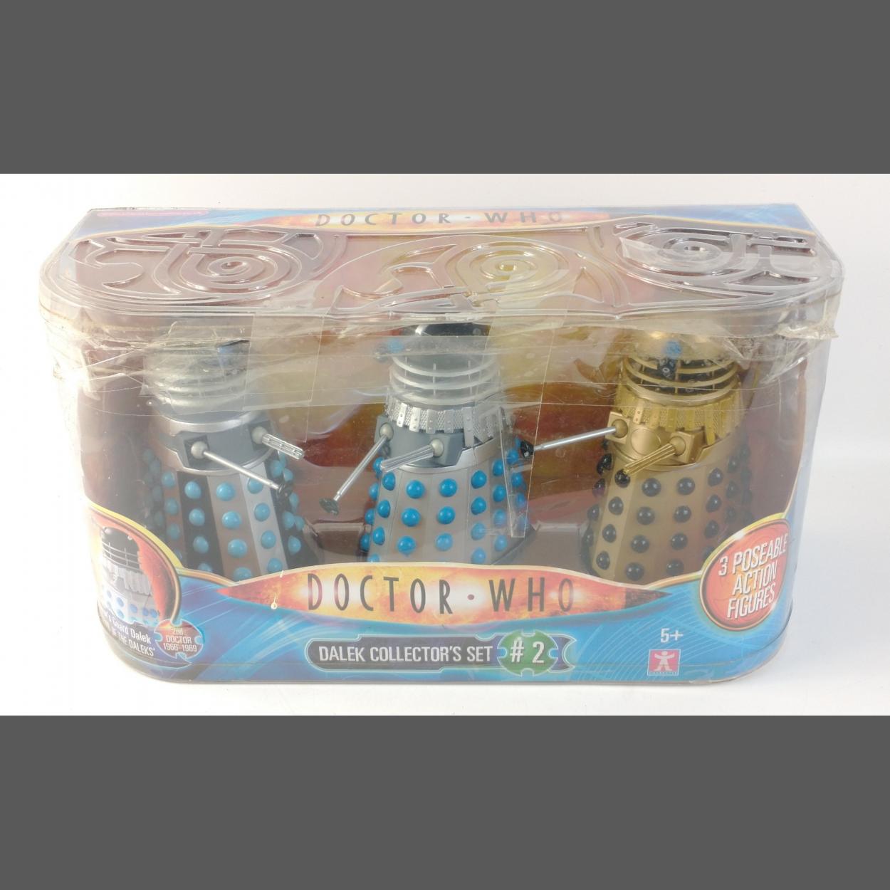 BBC DOCTOR WHO Collectibles. Daleks 3 Poseable Action Figures in box. NB. Item 03285 The box has damage with older tape repairs. A very nice set.