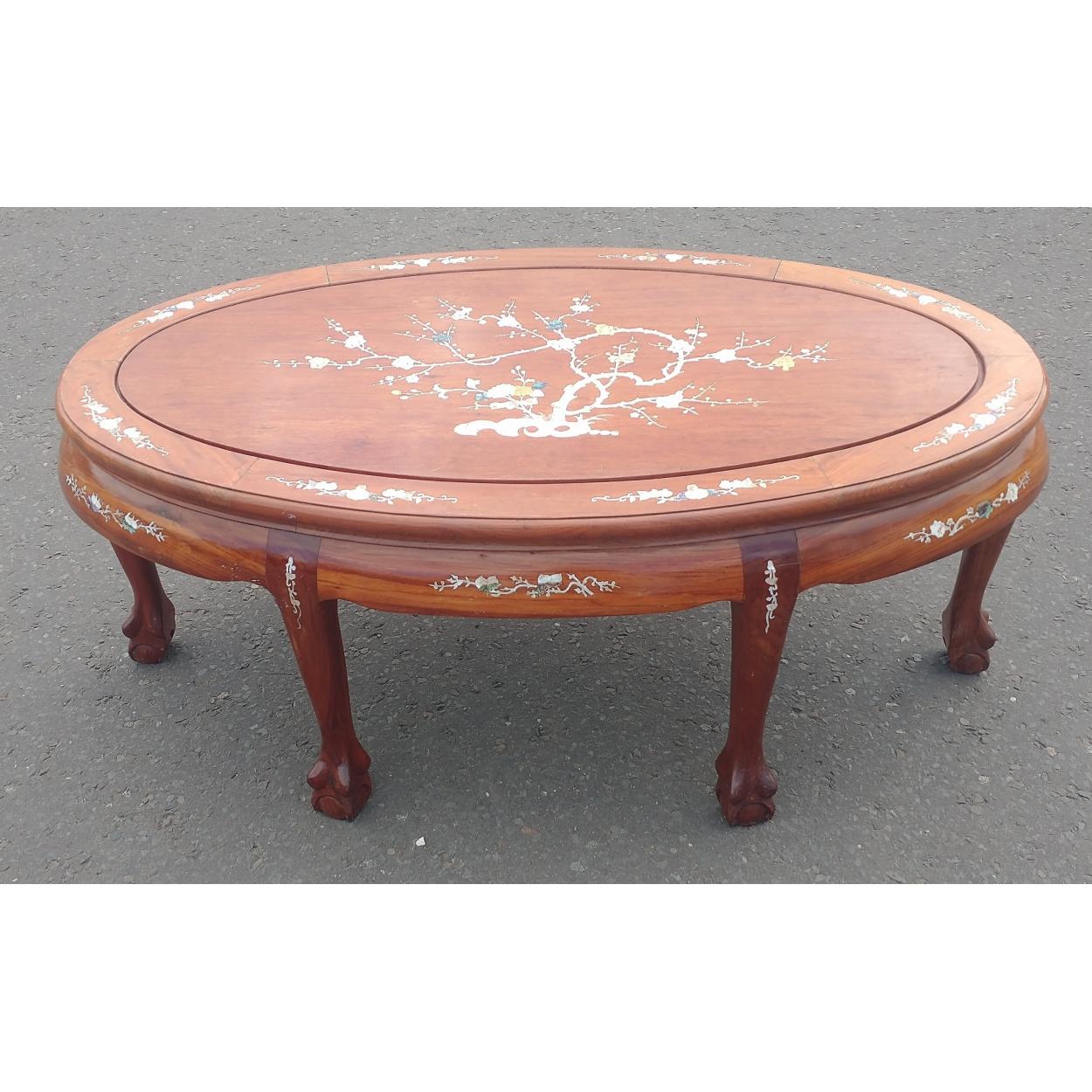 IMPORTED CHINESE lacquer wood-inlay coffee table - length 125cm x depth 70cm x height 50cm approx