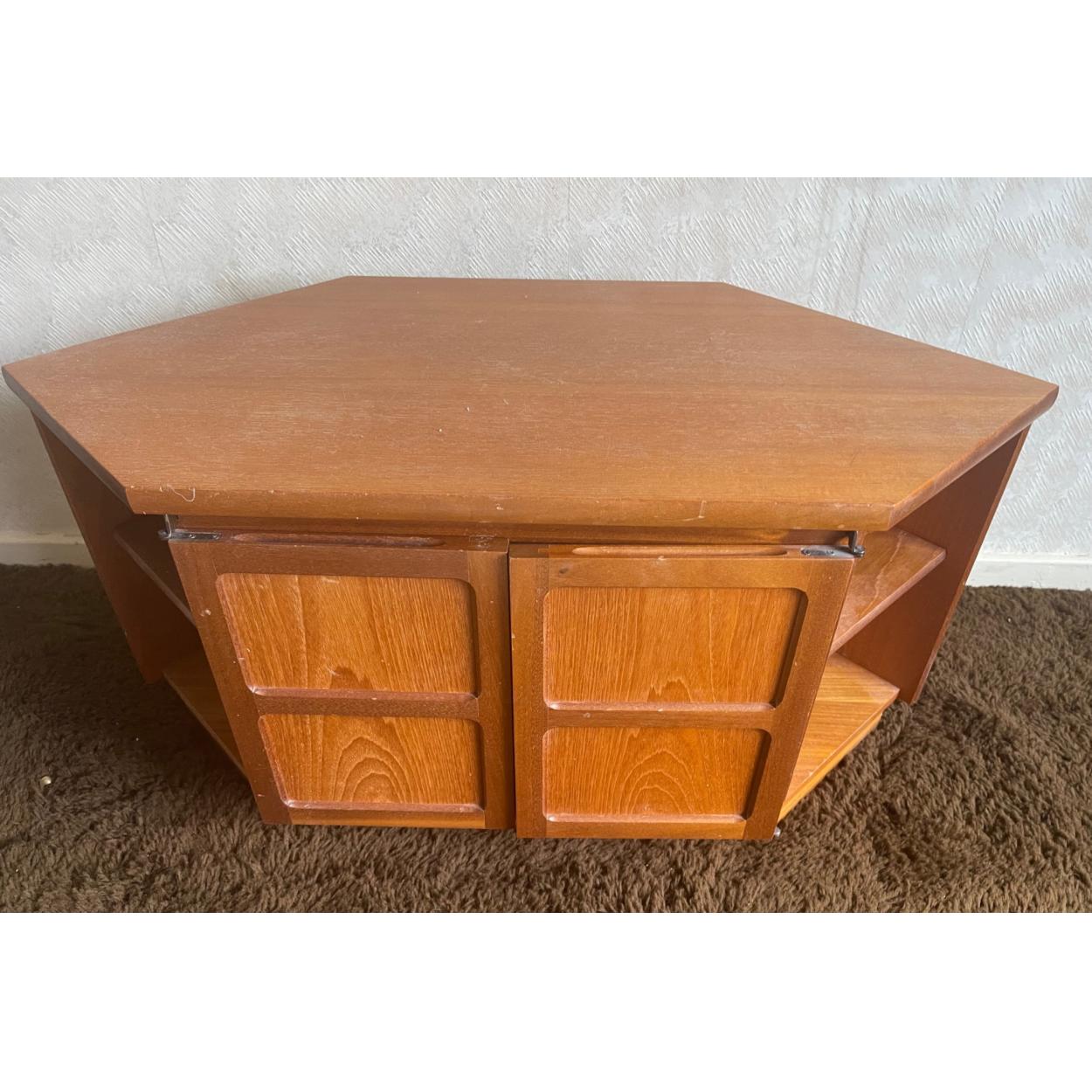 A RETRO style teak diamond shaped TV cabinet - 3ft width x 18” depth aporox