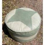 RETRO A green leather style c1950's pouffe with a star shaped design