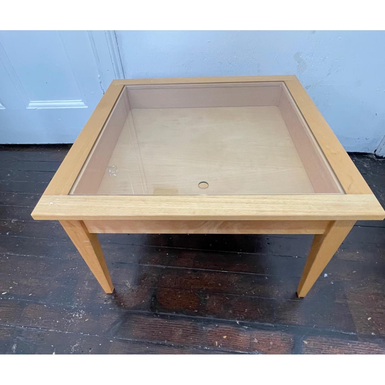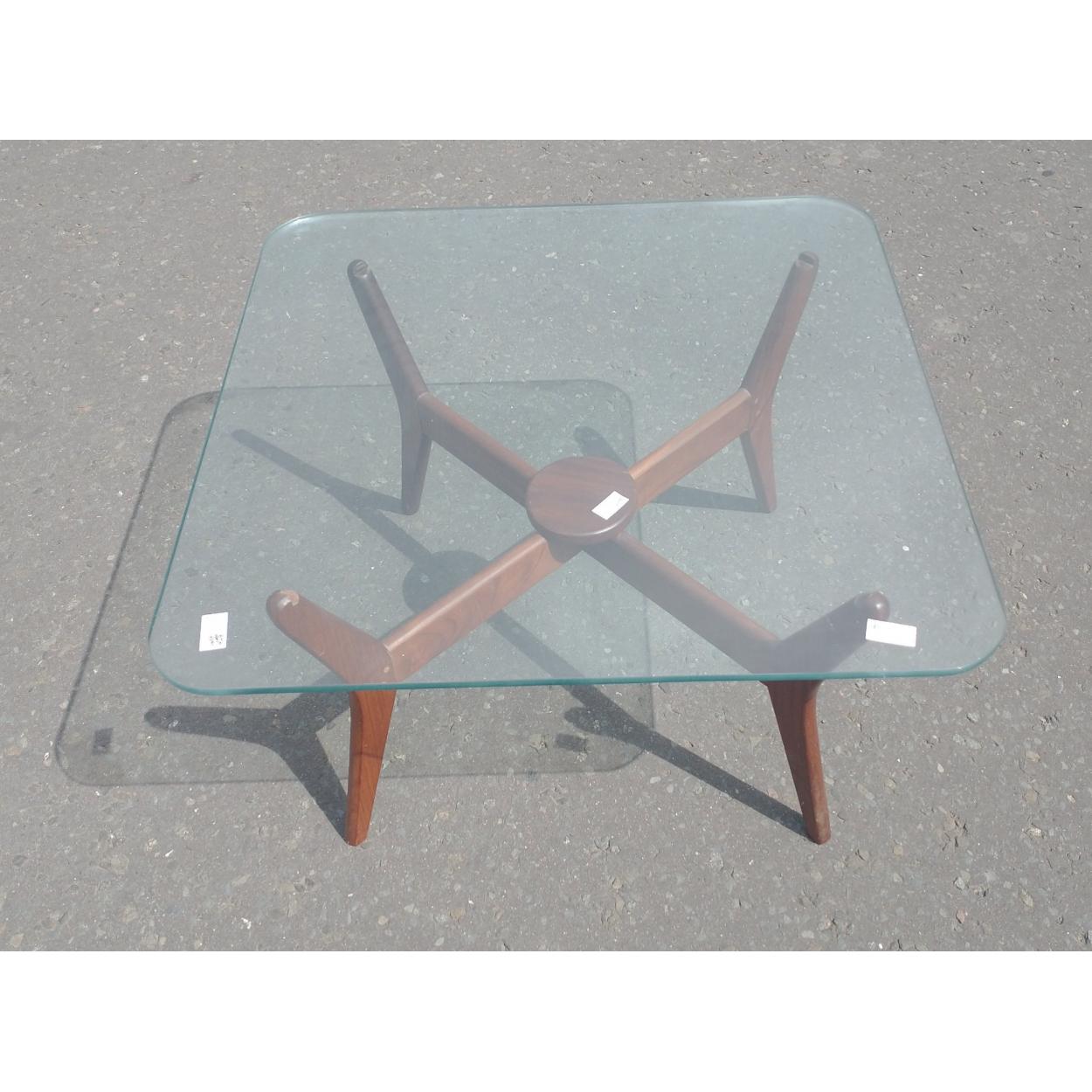 An ELEGANT coffee table with glass protective top - dimension 4ft long x 18" depth approx