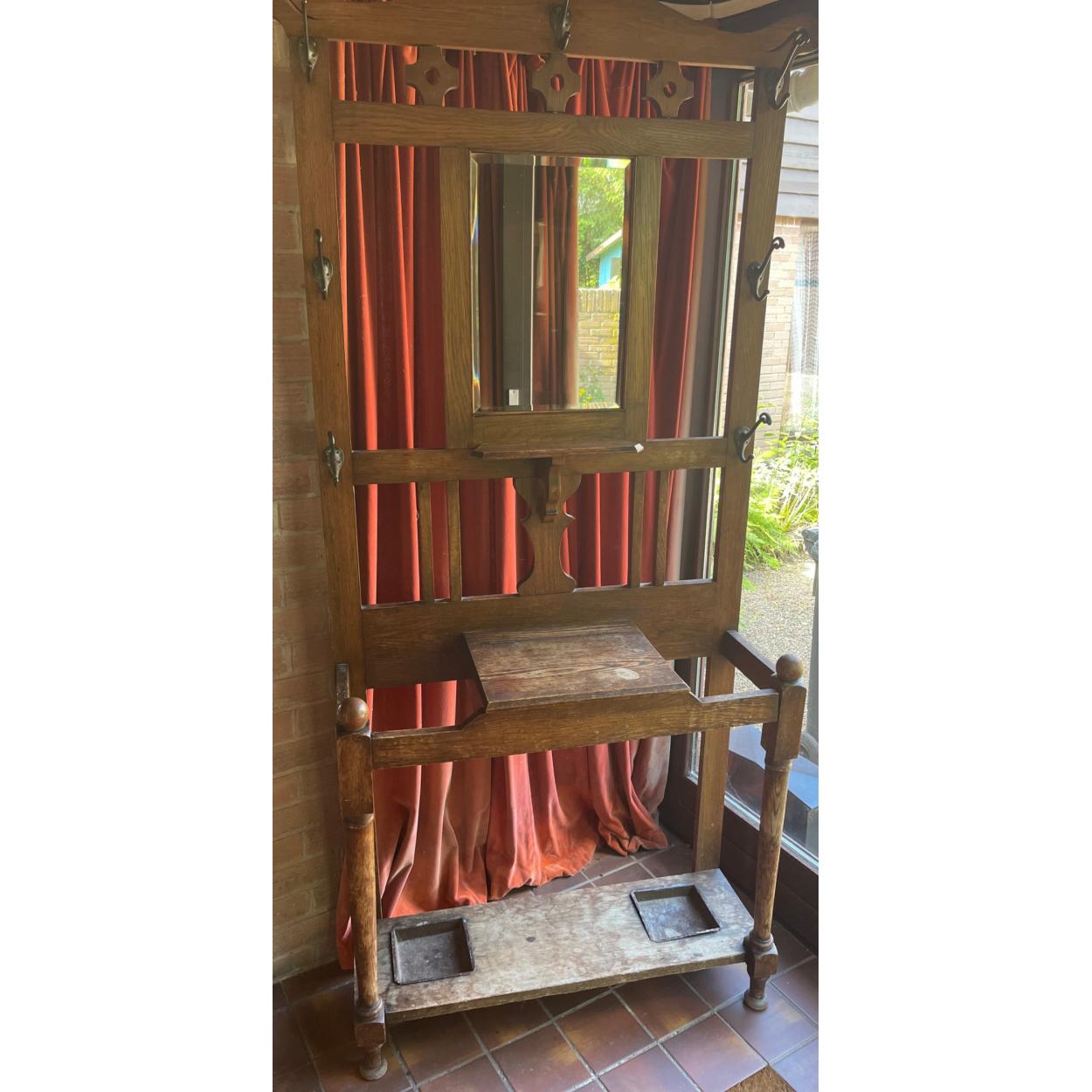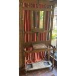 A nice tall EDWARDIAN hall hat and coat stand complete with mirror and two original drip trays - height 7ft x 3ft wide x 12" depth approx - would look fabulous rubbed down and waxed or coated in a nice grey chalk paint etc