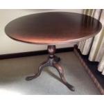 A VICTORIAN mahogany round tea table supported on tripod feet - in lovely condition! dimensions 70cm height x 80cm diameter approx