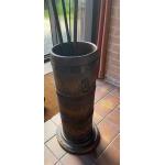 An ANTIQUE hall stick stand in tall barrel form - really UNUSUAL! - complete with two old walking sticks and a two piece fishing rod - height of barrel 2.5ft approx