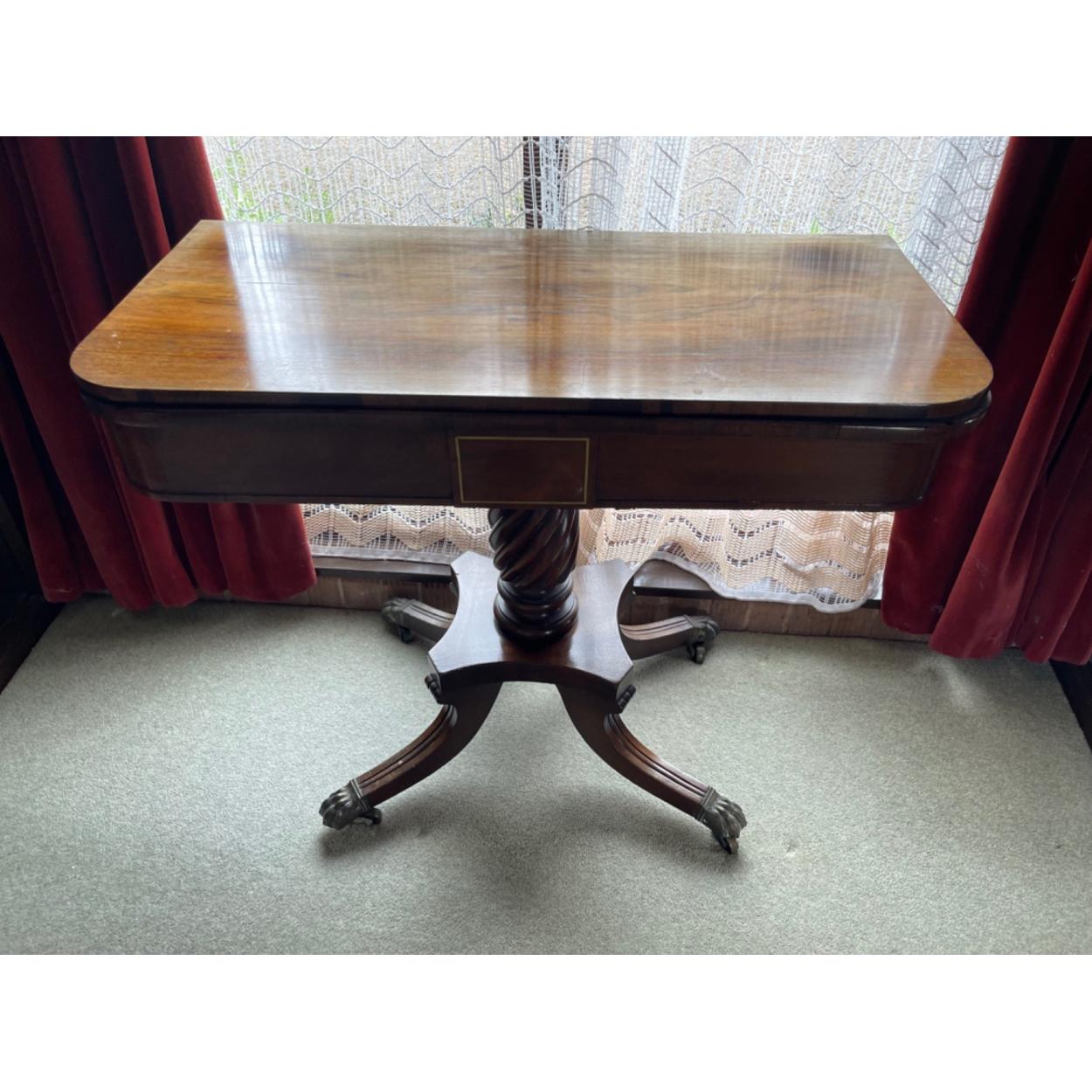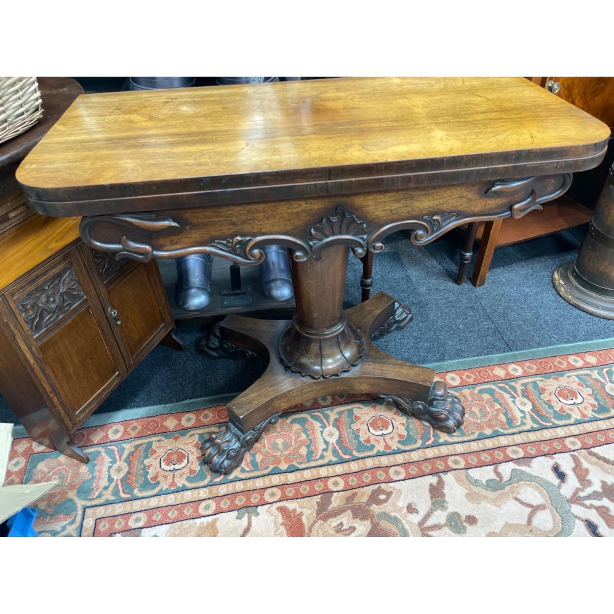 ANTIQUE VICTORIAN folding tea table on hand carved leg supports - height 34" wide x 17" depth(unfolded) and 34" depth when extended approx