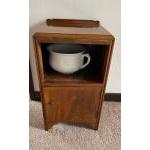 A VINTAGE bedside cabinet with cupboard to include the chamber pot also - 2ft height x 14" width x 12" depth