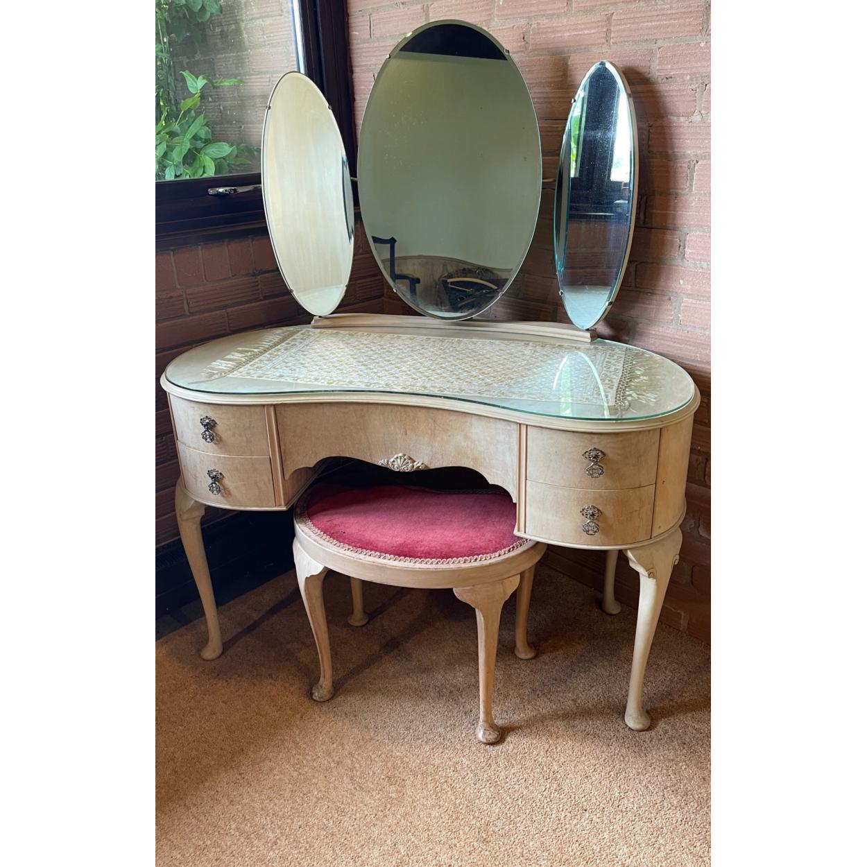 VINTAGE c1960's BEDROOM - A VINTAGE Birds Eye maple effect bedroom dressing table to include a mirror set and stool - 4ft width x 2ft depth approx