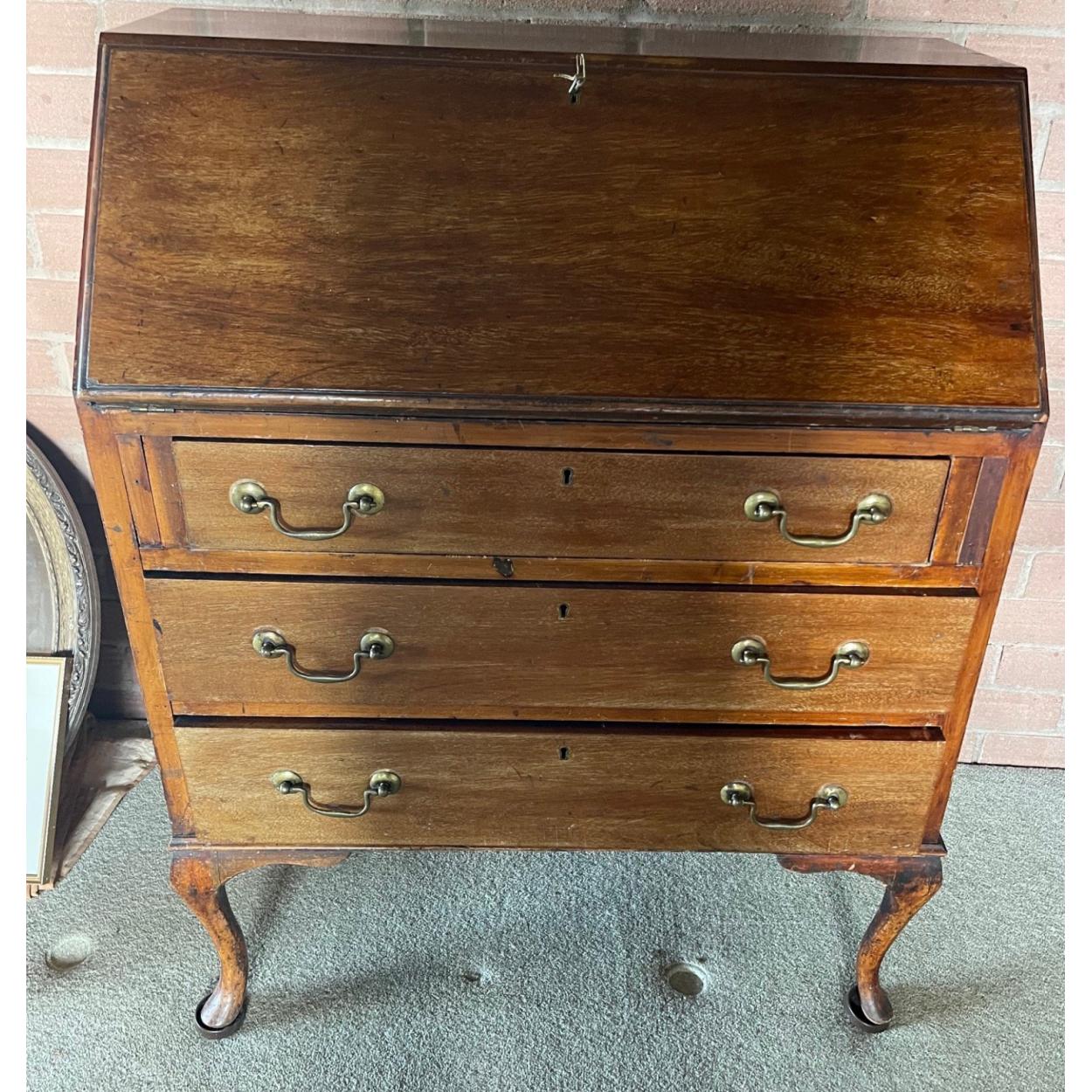 A BEAUTIFUL patina c1920's bureau with original brass handles - all fitted-out for stationery storage etc - dimensions 3ft wide x 4ft height x 18" depth approx