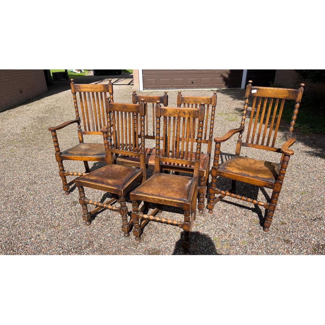 A set of six early 20th century ANTIQUE dining chairs with leather seat pads and the most fabulous patina! - to include four dining chairs and two IMPRESSIVE carvers - one of the seat pads has a tear across it which will require some attention!