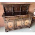 A nice oak SCOTTISH dresser - nice patina - hand carved barley-twist features, two large drawers, 3 cupboards - dimensions 5ft width x 18" depth x height 6ft approx - comes in two pieces for ease of transport etc