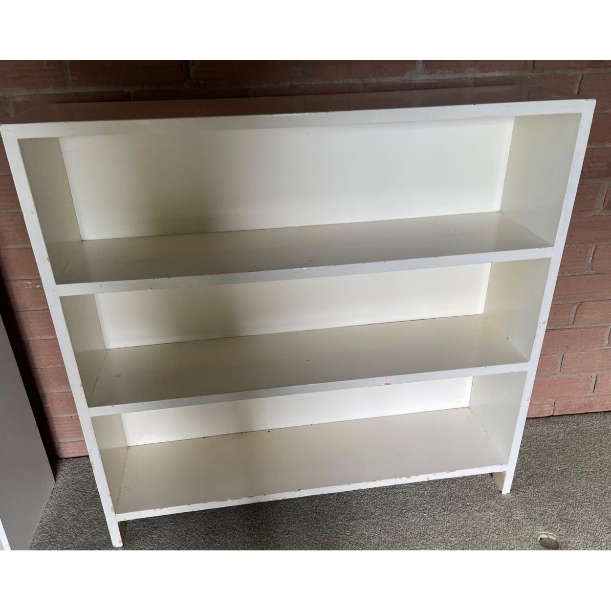 A sturdy four shelf white painted floor bookcase - dimensions 2.5ft wide x 3ft height approx