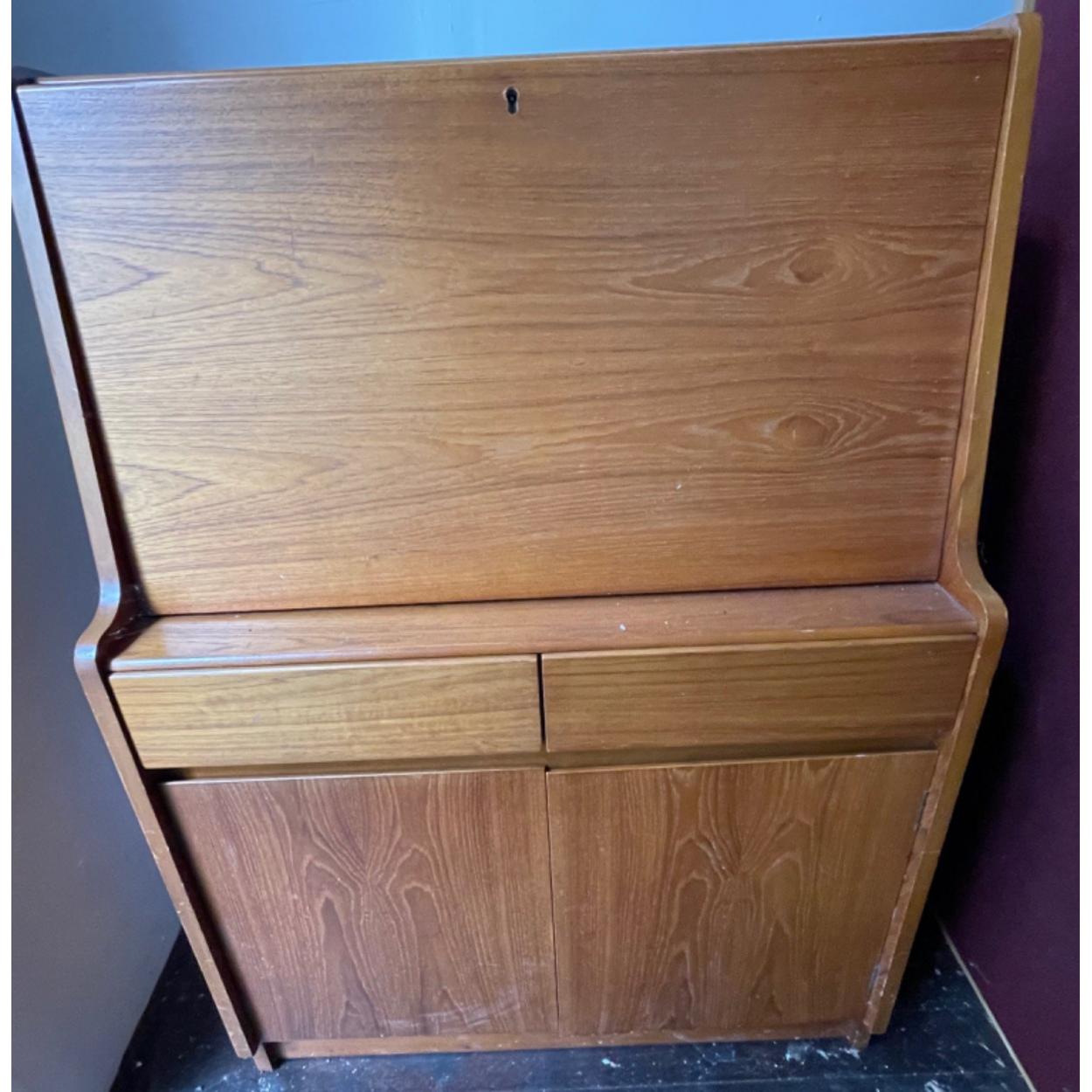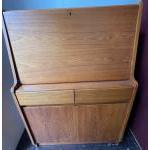 A RETRO teak bureau with two drawers and two cupboard doors space for storage - dimension 3ft x 15" depth x 3.5ft height approx