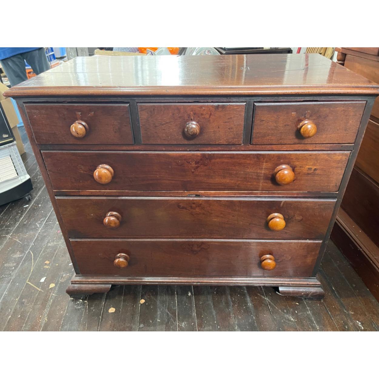 VICTORIAN original 3 over 3 mahogany chest of drawers with wooden knob handles - 3.5ft width x 3.5ft height x 18" depth approx - a nice example!