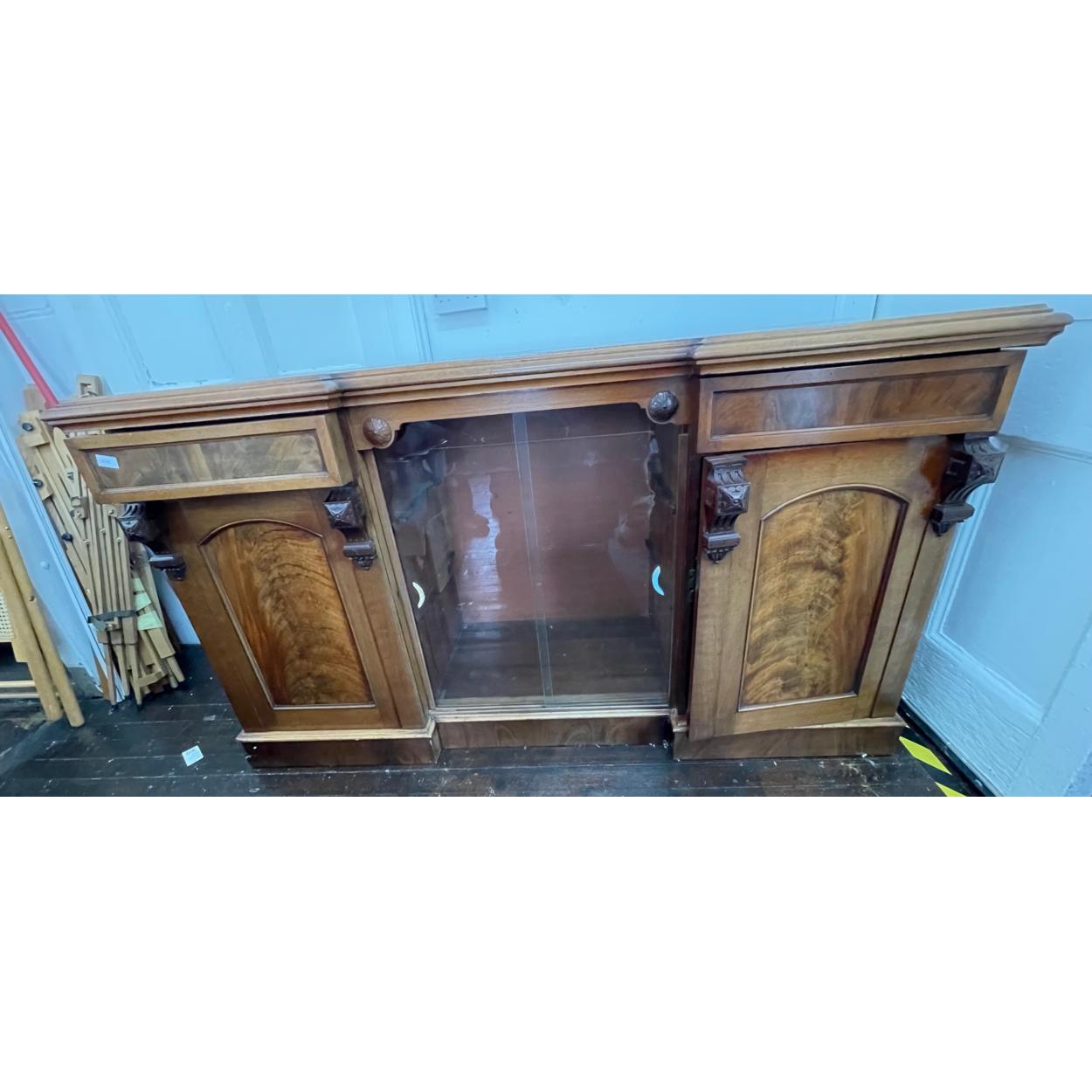 VICTORIAN heavy mahogany sideboard with two drawers and two cupboard doors with glass doors addition for displaying purposes etc - 5.5ft length x 18" depth x height 3.5ft approx