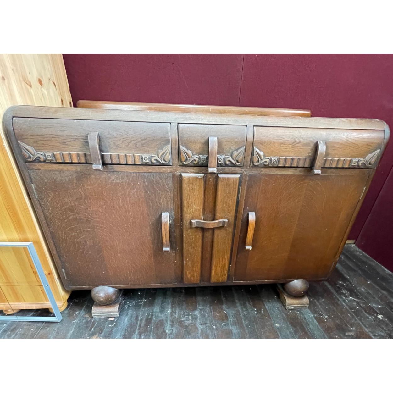 A c1930's Art Deco inspired sideboard - would look FABULOUS 'upcycled' to sheek grey chalk paint etc - 4ft width x 18" depth x 3.5ft height approx
