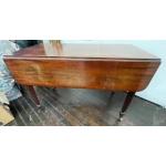 VICTORIAN drop leaf SOLID MAHOGANY dining table on fluted leg supports with original brass castors supported - dimensions 3.5ft length x 18" depth (folded down) and 3.5ft when extended with both leaves approx