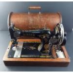 A cased SINGER sewing machine complete with keys. Nice gilt lettering and we have been advised the machine works well.