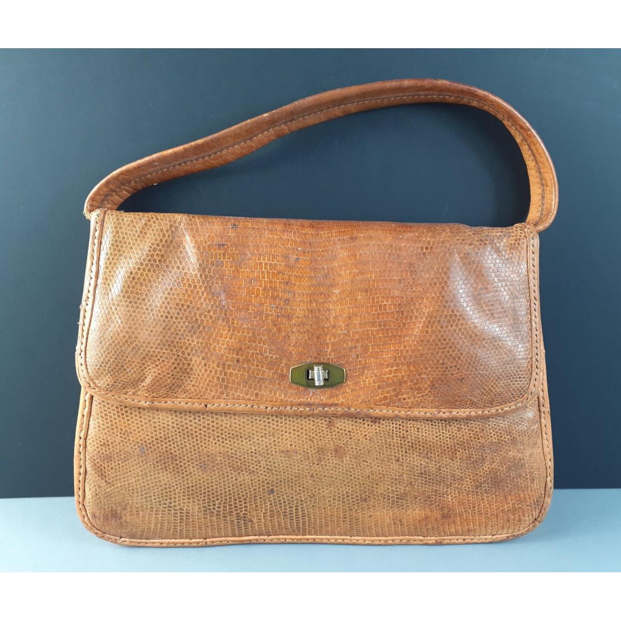 A snakeskin handbag with three interior compartments, measures 34x24cm. In need of a gentle clean