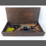 WRIGHT & MOORE Antique Precision Tools. A lovely boxed complete set of protractor and set square complete with additional level bubbles. A beautiful set in super complete condition.