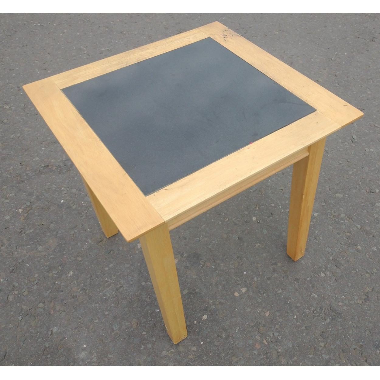 A modern slate square topped side table in light ash finish - 40cm square top x60cm height approx