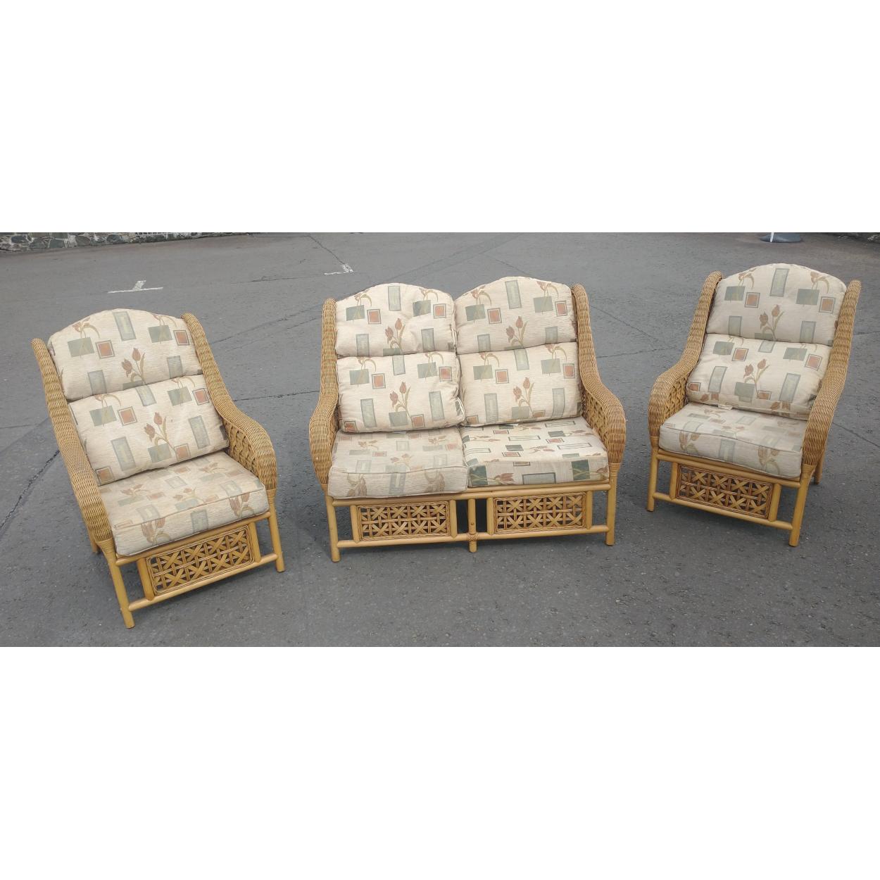 SUPER QUALITY REED conservatory suite of 2 armchairs and a 2 seater - really comfy! - In good clean condition.