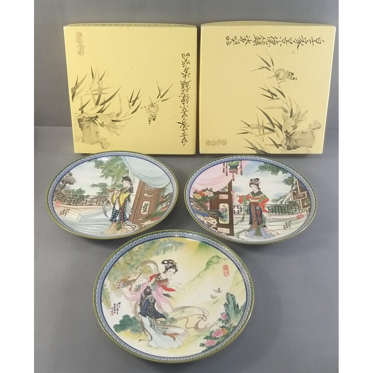 Three boxed 1987 Imperial Jingdezhen Porcelain Chinese plates each 22cm approx and each comes with certification paperwork. Beautifully decorated items.