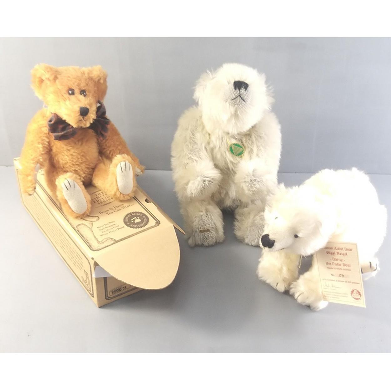 Three modern plush high quality TEDDY BEARS consisting of HERMANN Barny White The Polar Bear Ltd. Ed. 59/250, one other HERMANN polar bear and a boxed BOYDS collection