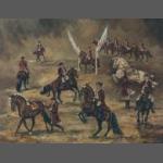 GILLIAN HARRIS framed signed in pencil limited edition print (308/850) titled 'Lusitanos at work' dated 1987 of Calvary on battlefield