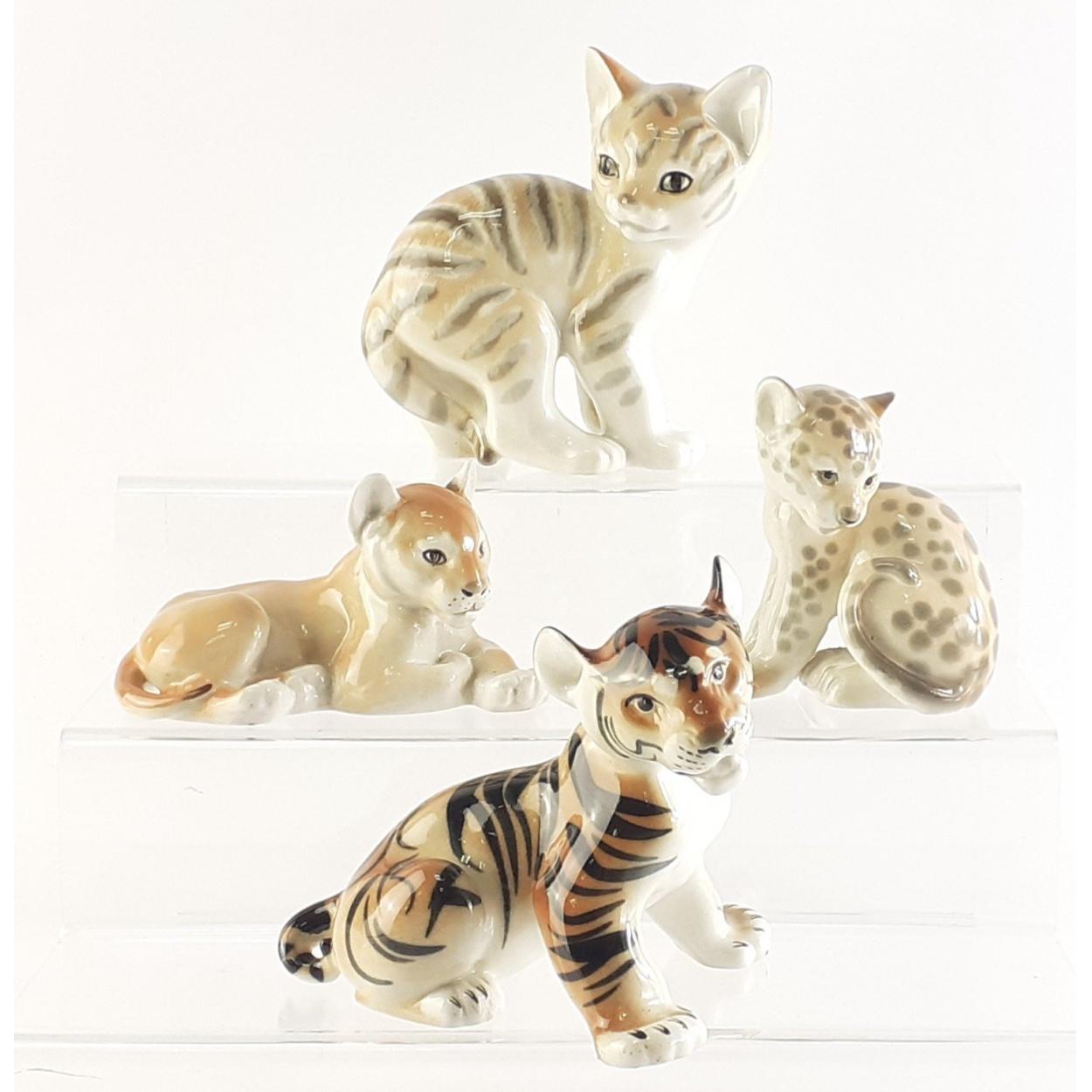 Four super LOMONOSOV USSR made models. To include Cat 14cm, Tiger, Leopard and Lion Cub. All four in good condition, the Cat has a minor chip in the ear tip.