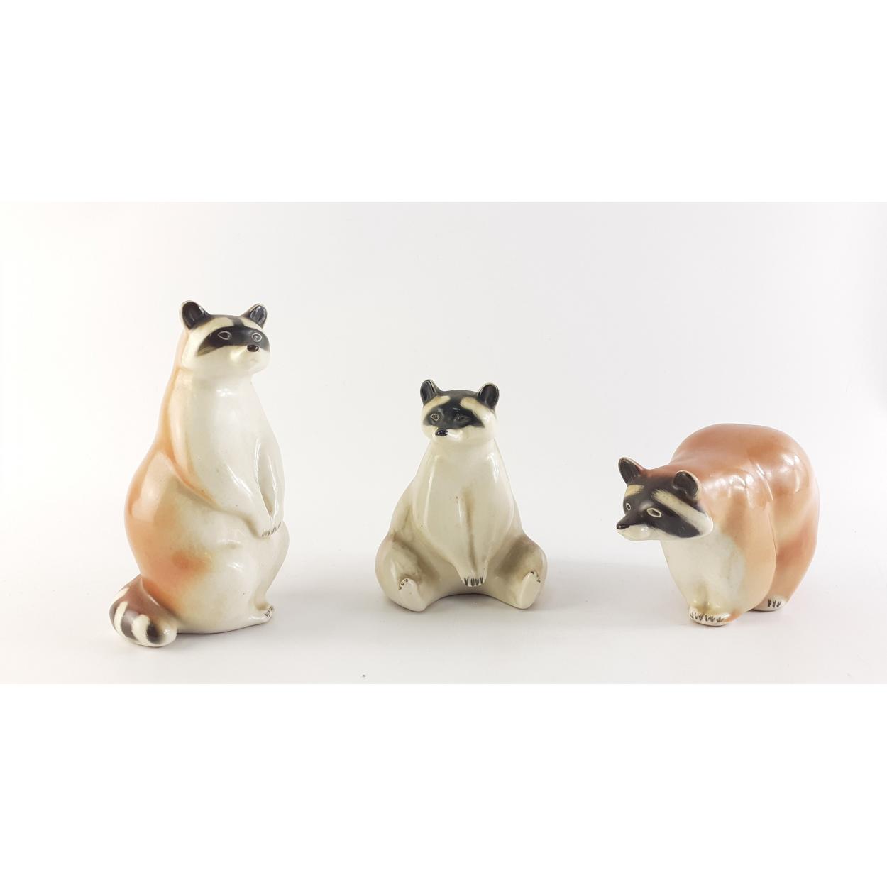 Three LOMONOSOV USSR model of raccoons, largest 15cm approx. All in undamaged condition.