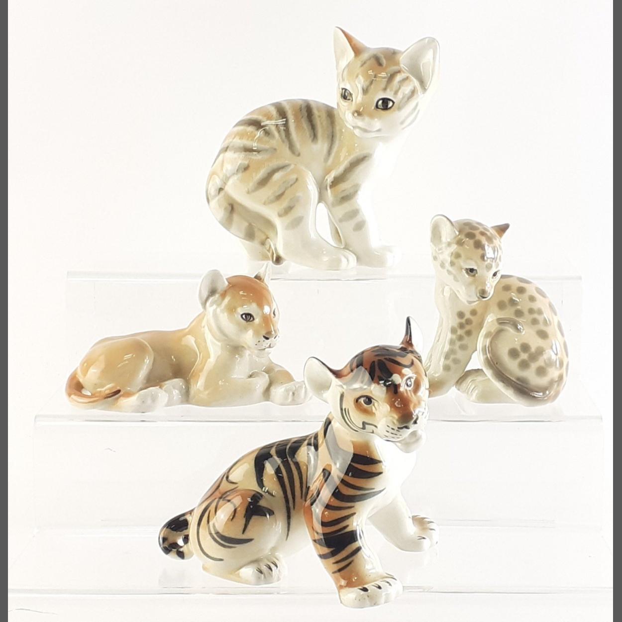 Four super LOMONOSOV USSR made models. To include Cat 14cm, Tiger, Leopard and Lion Cub. All four in good condition, the Cat has a minor chip in the ear tip.
