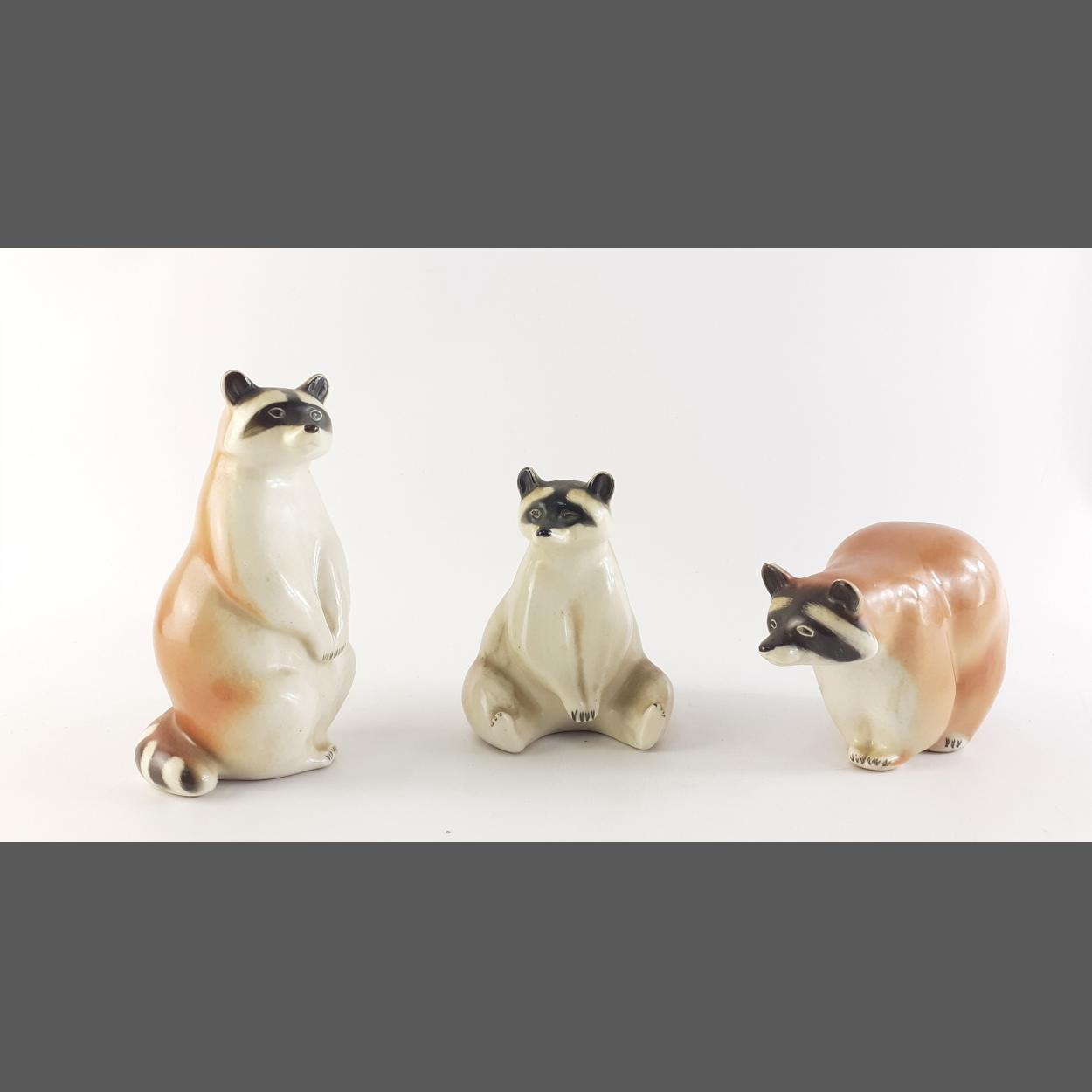Three LOMONOSOV USSR model of raccoons, largest 15cm approx. All in undamaged condition.
