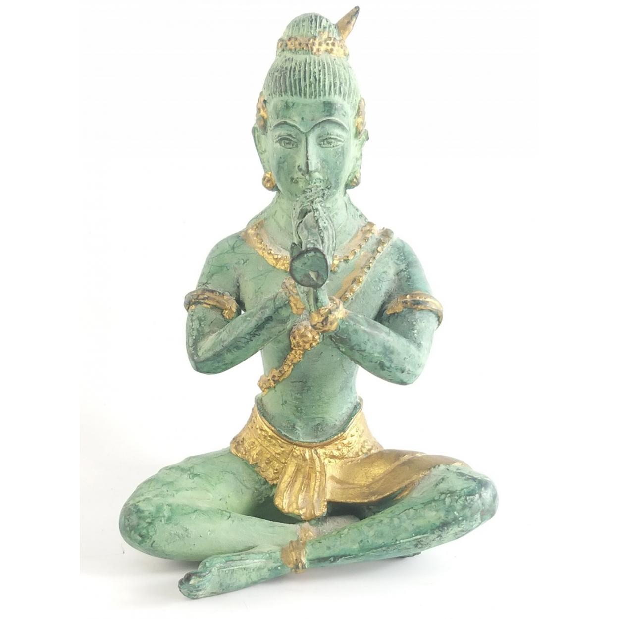 A vintage bronze seated BUDDHA playing a flute, approx 14cm tall