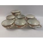 Seven oriental eggshell tea bowls with attractive assorted floral patterns, each with signature to base. One with crack repair, others are in good condition.