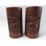 A lovely pair of VINTAGE Chinese carved bamboo calligraphy brush pots each standing approx 20cm high. One has a crack running the full length at the rear but it still displays beautifully.