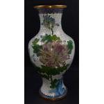 A large cloisonne vase with a design of chrysanthemums stands 26cm high
