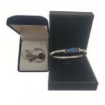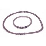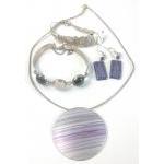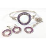 A silver jewellery suite with purple enamel and Celtic twist, consisting of a bangle, pendant (2cm) on a chain (46cm long) and a pair of earrings. The bangle is stamped 925, other items "SS" gross weight 29g