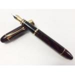 Vintage HILL Fountain pen in lovely deep maroon mottled finish with gilt mounts. West German Iridium nib. The internal retaining plastic holder is broken but the pen still closes well. Some marks on the gilt bands.
