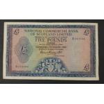 Scottish Banknote - NATIONAL COMMERCIAL BANK OF SCOTLAND 1963 £5 notes in good collectible grade. Minor blemishes but no major folds, rips, tears or penmarks.
