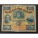 Scottish Banknote - NATIONAL COMMERCIAL BANK OF SCOTLAND 1909 £1 In good collectible grade. Signs of wear with folds and wear to edges but no rips, tears or penmarks. A rare early note.
