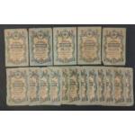 Banknotes - An interesting collection of 1909 Pre Revolutionary RUSSIAN 5 Rouble banknotes. 18 non consecutive notes in used grade.