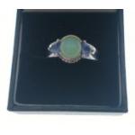 A silver ring, stamped 925, with central oval stone (possibly opal), Size R, gross weight 1.5g