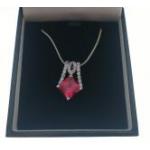 A silver, stamped 925 chain, 42cm approx, with a pendant stamped 925, 3cm long approx, with a red stone and multiple clear stones, gross weight 7.7g