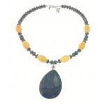 Two necklaces, one being graduated highly polished pebbles 47cm long approx, the other a large resin pendant (7x7cm) with a necklace of polished quartz approx 40cm long, plus a necklace (42cm approx) and bracelet ( approx 16cm) set with a white flower and faux pearl necklace plus a pair of HONORA beaded hoop earrings,