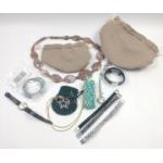 A collection of studio jewellery to include a bracelet, possible silver but hallmarks indistinct, a bracelet with 3 stones, a pair of drop earrings and a necklace