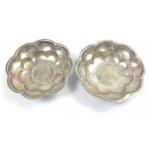 An unusual pair of small 10cm diameter 800 SILVER dishes set with large MARIE-THERESE coins dated 1780 to the base, gross weight 160 grams