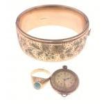 Gold cased ladies cocktail watch by VERTEX REVUE, Case stamped 0.375 Bracelet is marked Rolled Gold. Total gross weight 11.4g including bracelet. Watch winds and appears to be working.