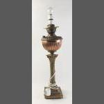 An electrified brass and copper column lamp standing 55cm approx. No shade