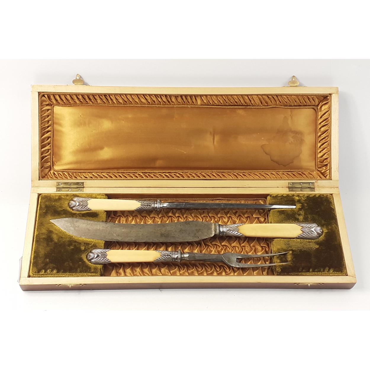 A very attractive boxed complete carving set by Taylors Eye Witness of Sheffield. Light wear to box but overall a lovely set.