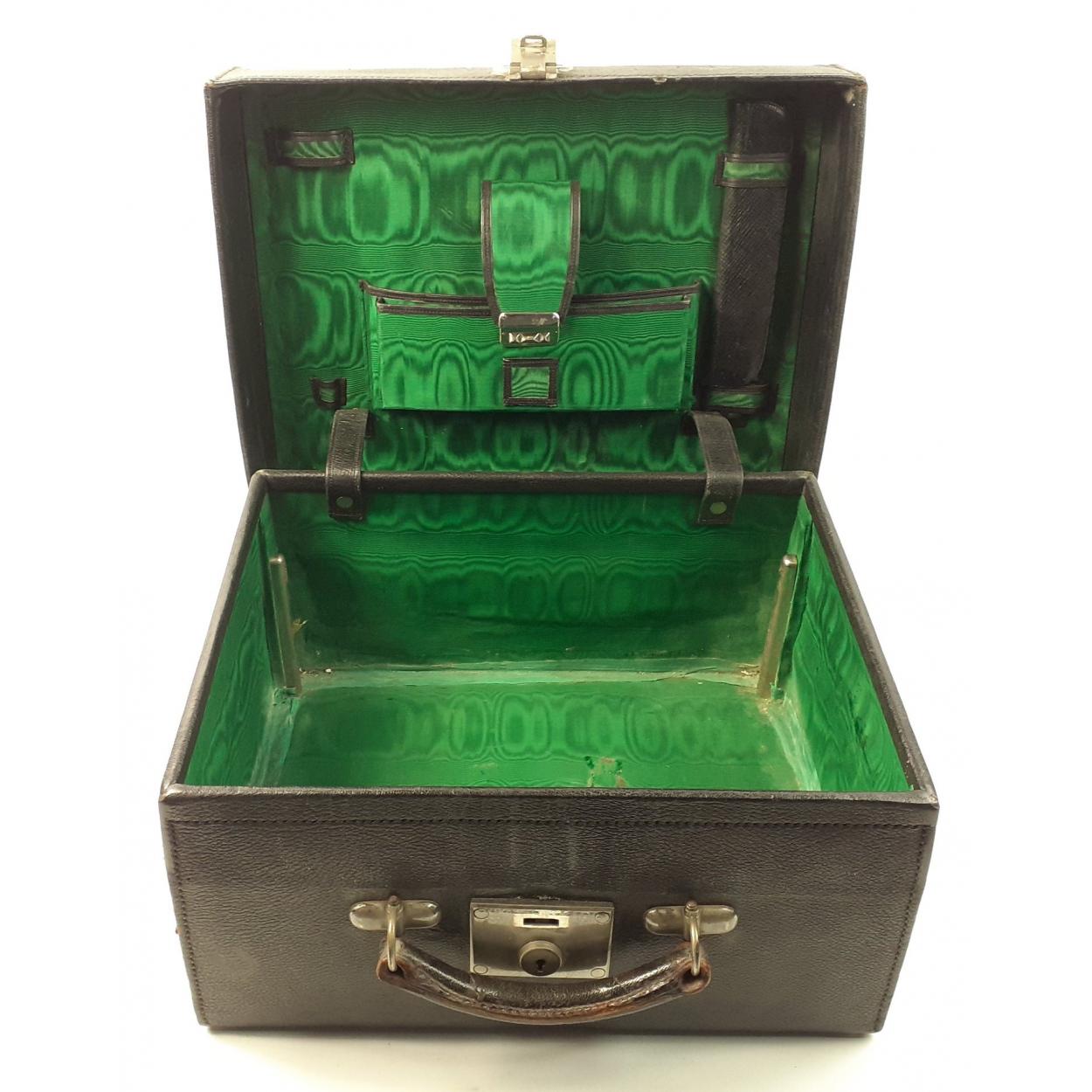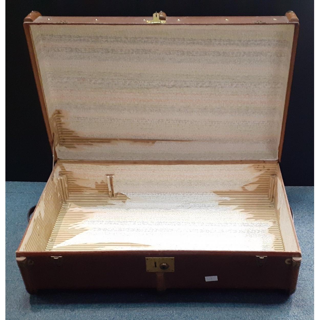 Forget travelling with cheap airlines, this case comes from a more luxurious time - a green silk lined travel case with first class stamps from the British India Steam Ship Line and gilt monogram, measures 41x30x21cm approx
